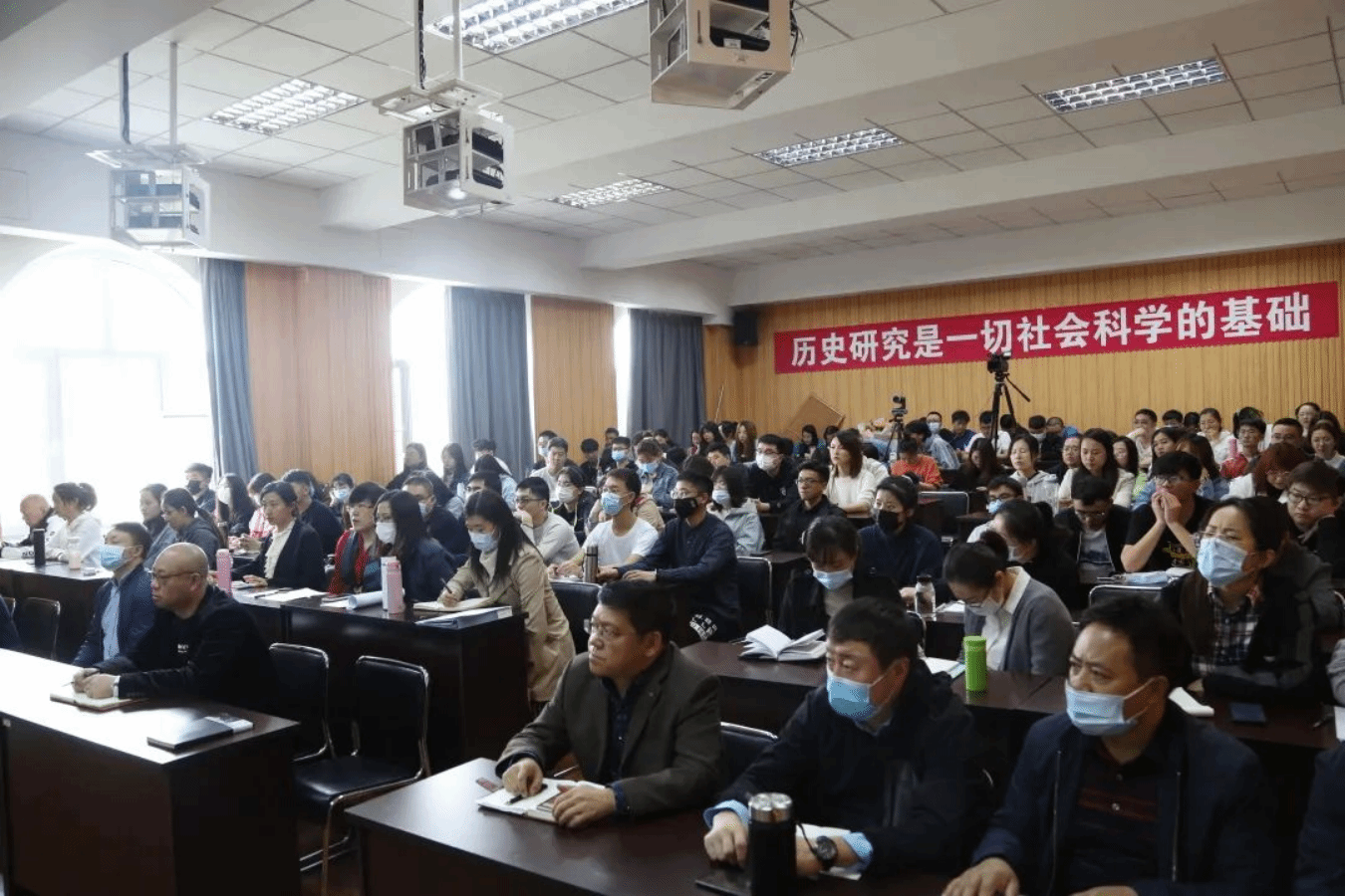 师生进行了分享交流,认为中国的和平崛起势不可当,在疫情期间中国所显示出的制度优势就是最好体现,强调广大同学在加强历史专业学习的同时,还要树立专业自信。讲座在一片轻松友好的气氛中落下帷幕。
